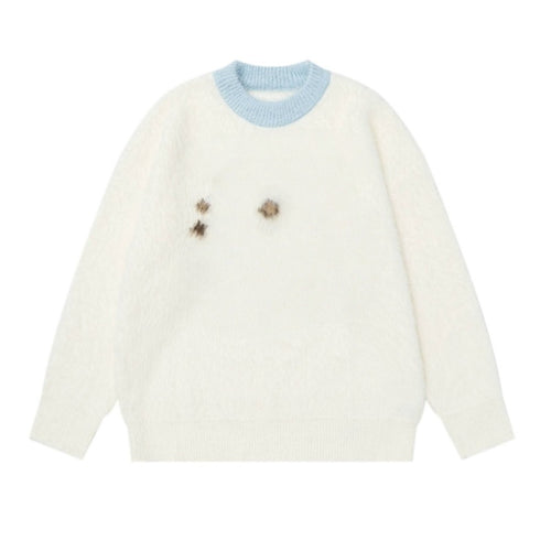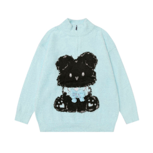 Cute Little Bear Pattern Half-Zip Sweater